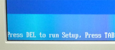 画面左下に「Press DEL to run Setup, ~」の表示が出ますのでキーボードの[Delete]キーを押します。